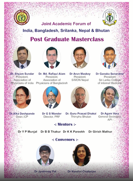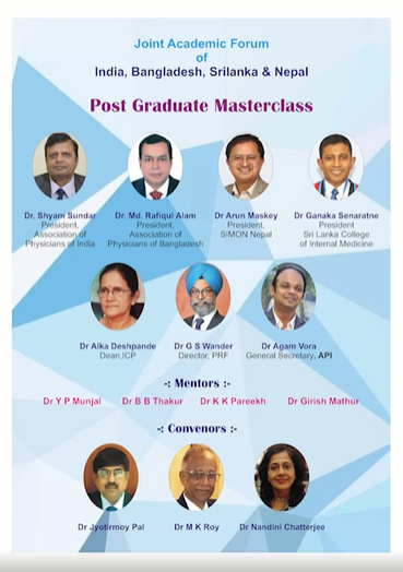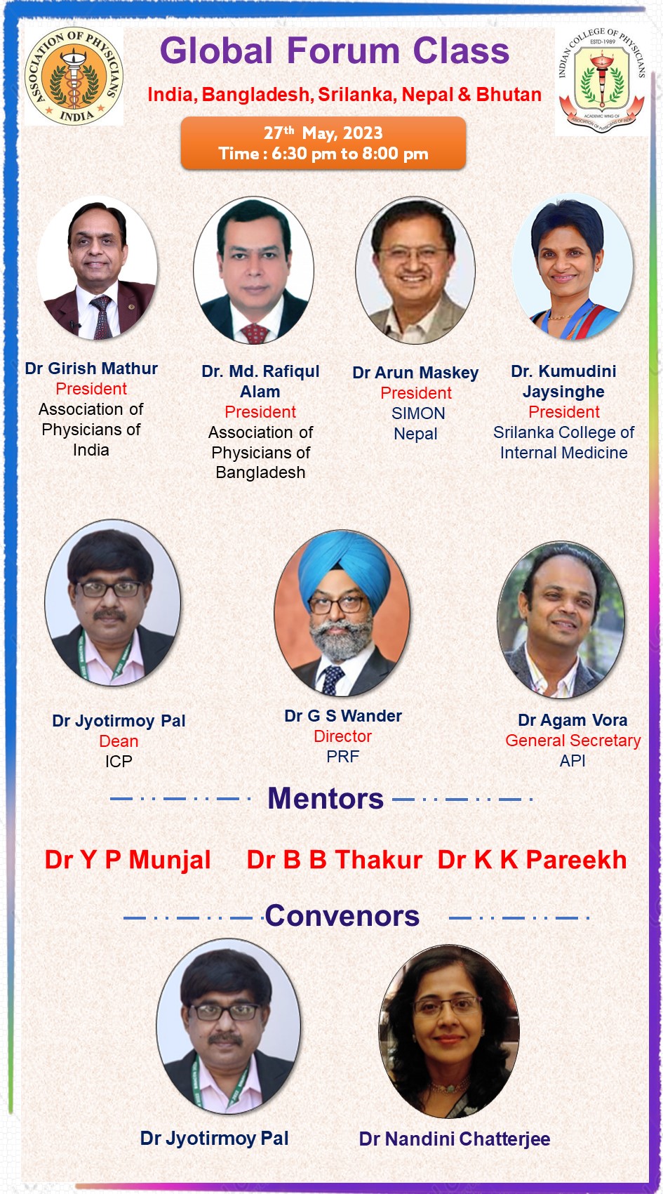 It was accepted that that a joint forum for academic collaboration will be established consisting of India, Bangladesh, Nepal, Bhutan, Srilanka. A Committee will be formed with representatives from all countries. Later on it was renamed GLOBAL FORUM with the inclusion of Royal college of Physicians and surgeons of Glasgow , European Federation of Internal Medicine ,Mc Master University of Canada , and other Physician societies from Malaysia , Australia and ISIM.